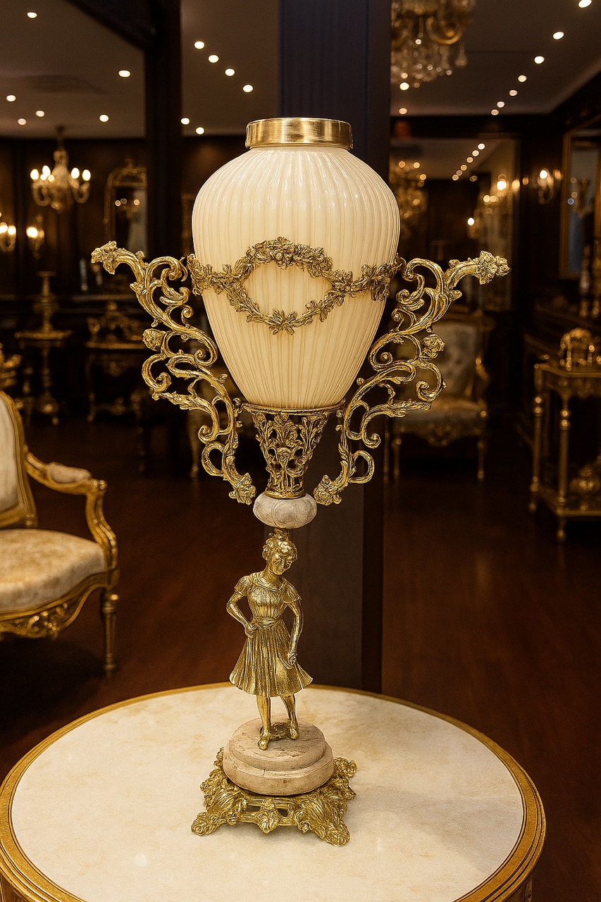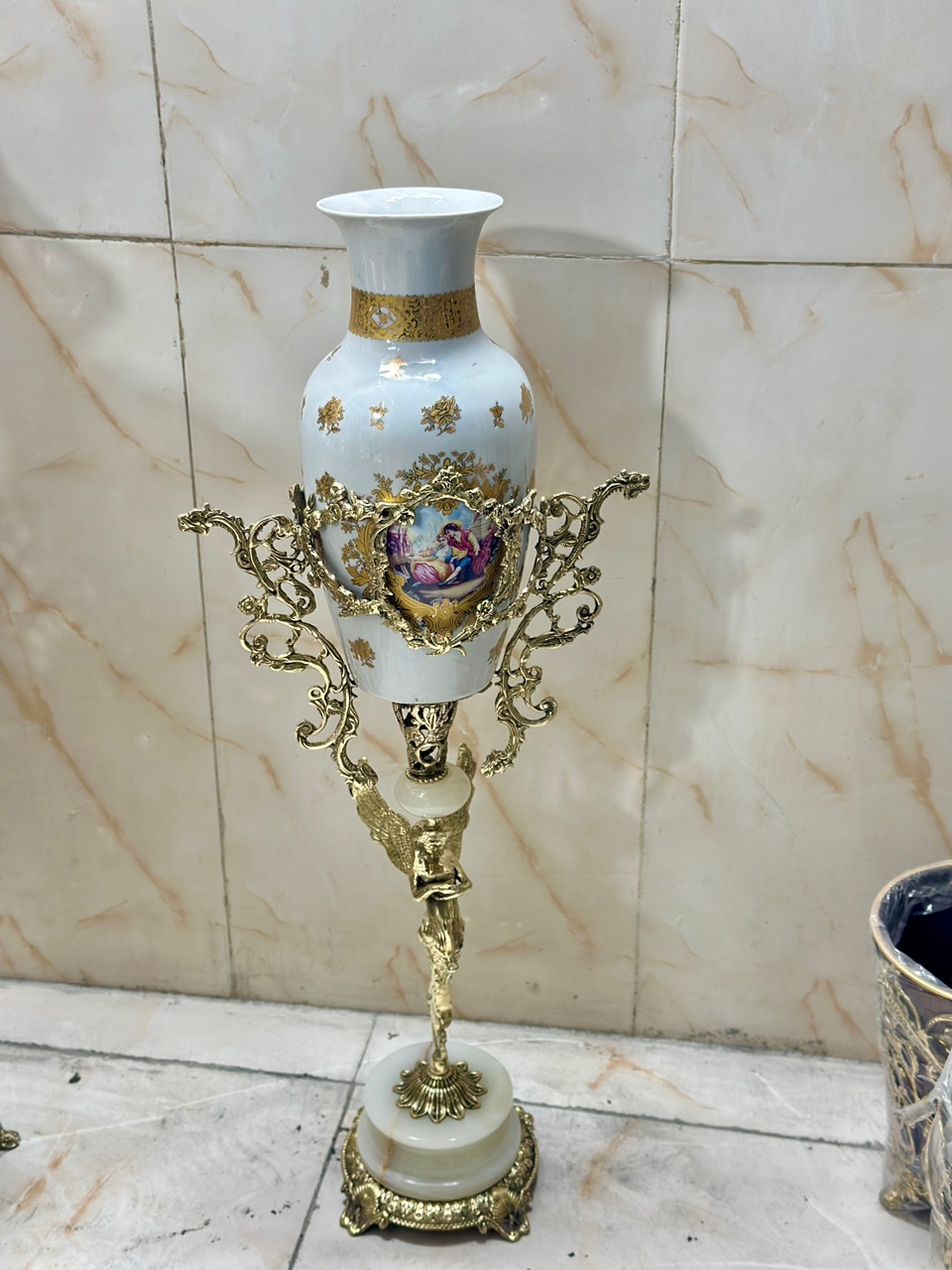 گلدان کنار سالنی جنس چینی طلا کوب با پایه برنز مدل فرشته