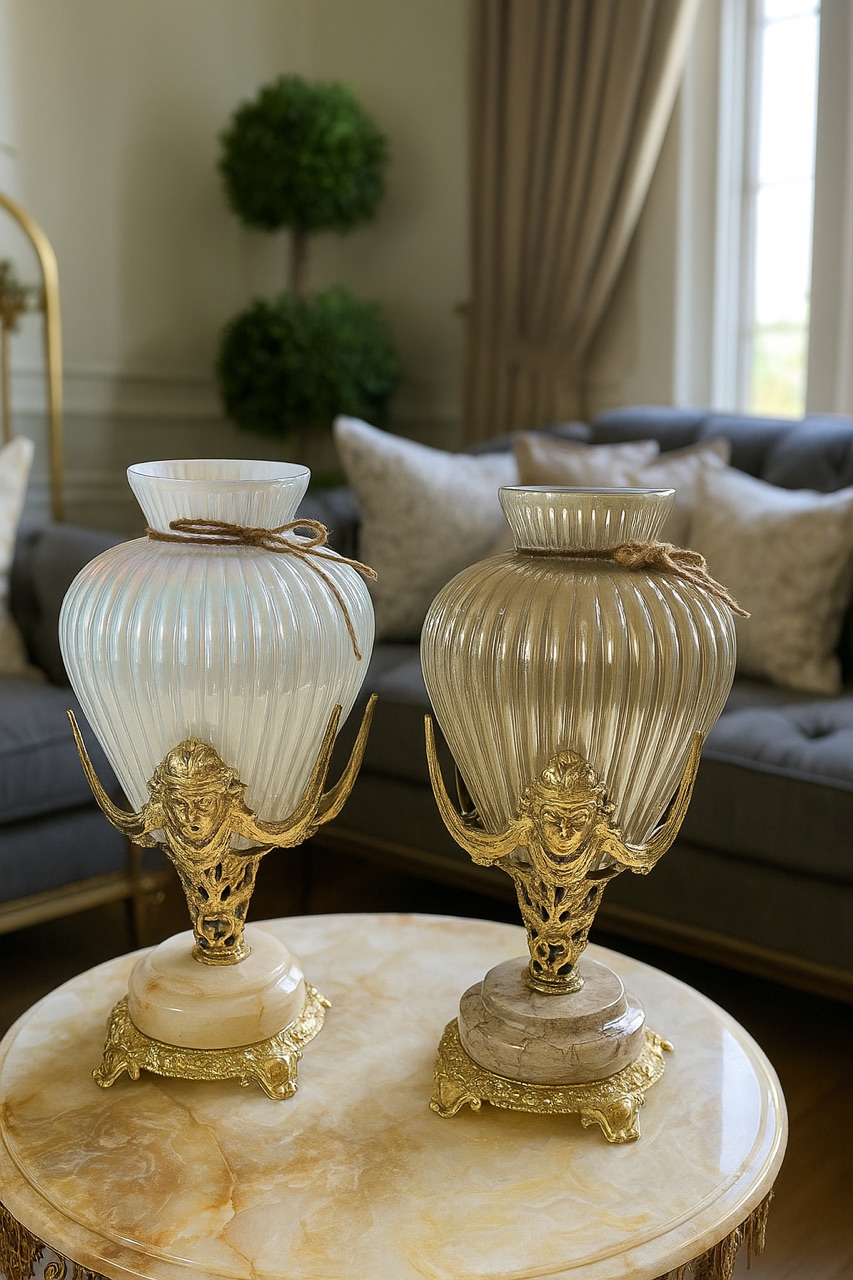 گلدان کنار سالنی بلور با پایه برنز و سنگ