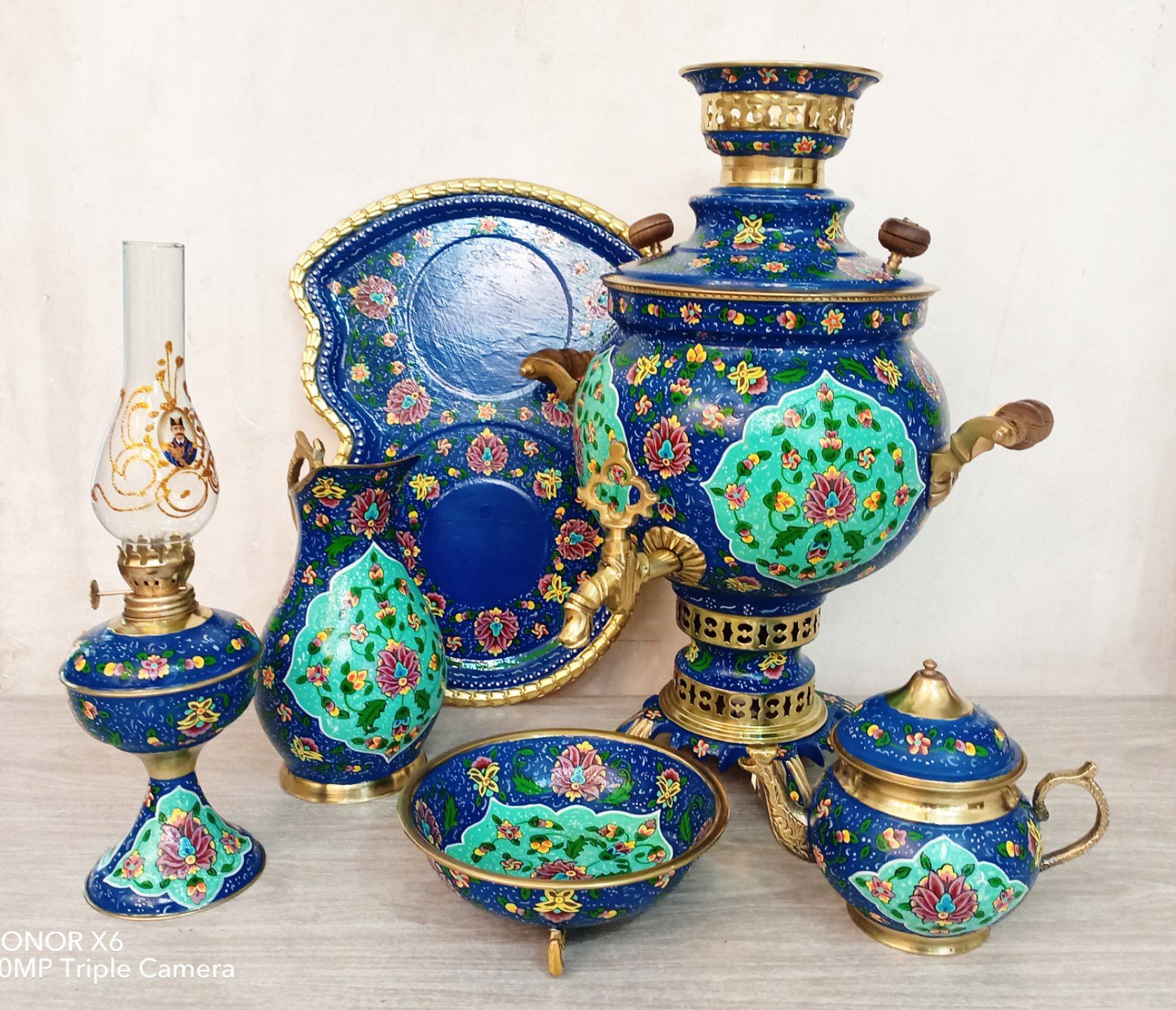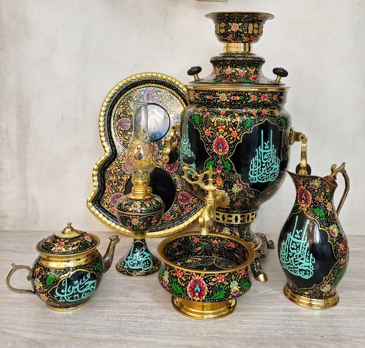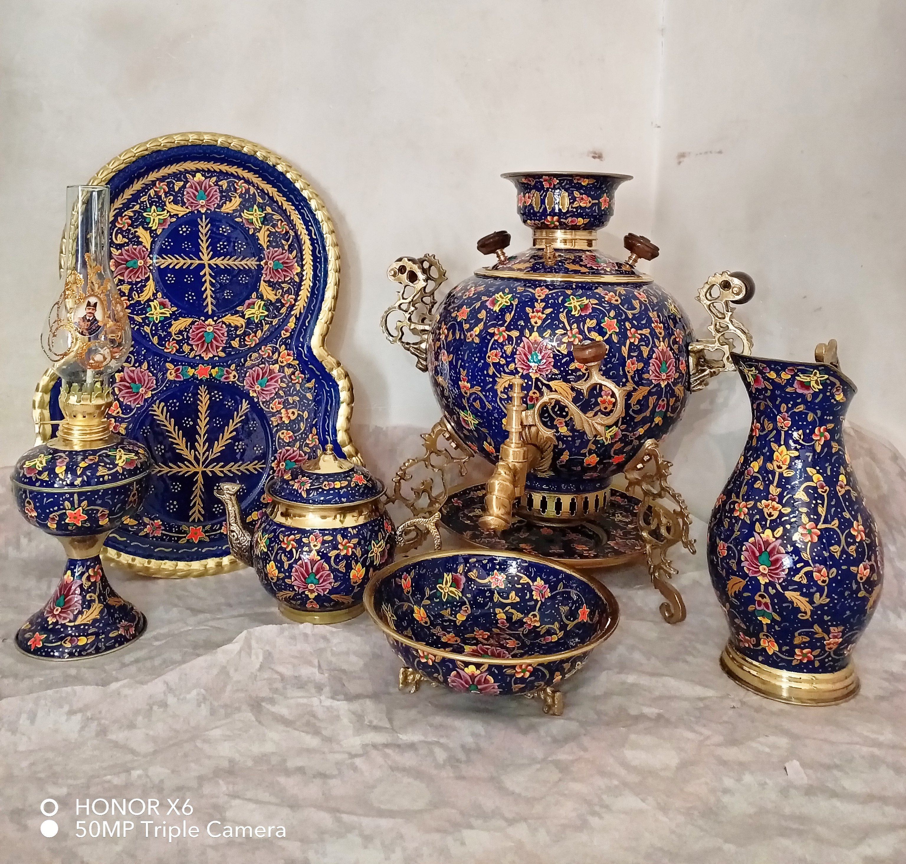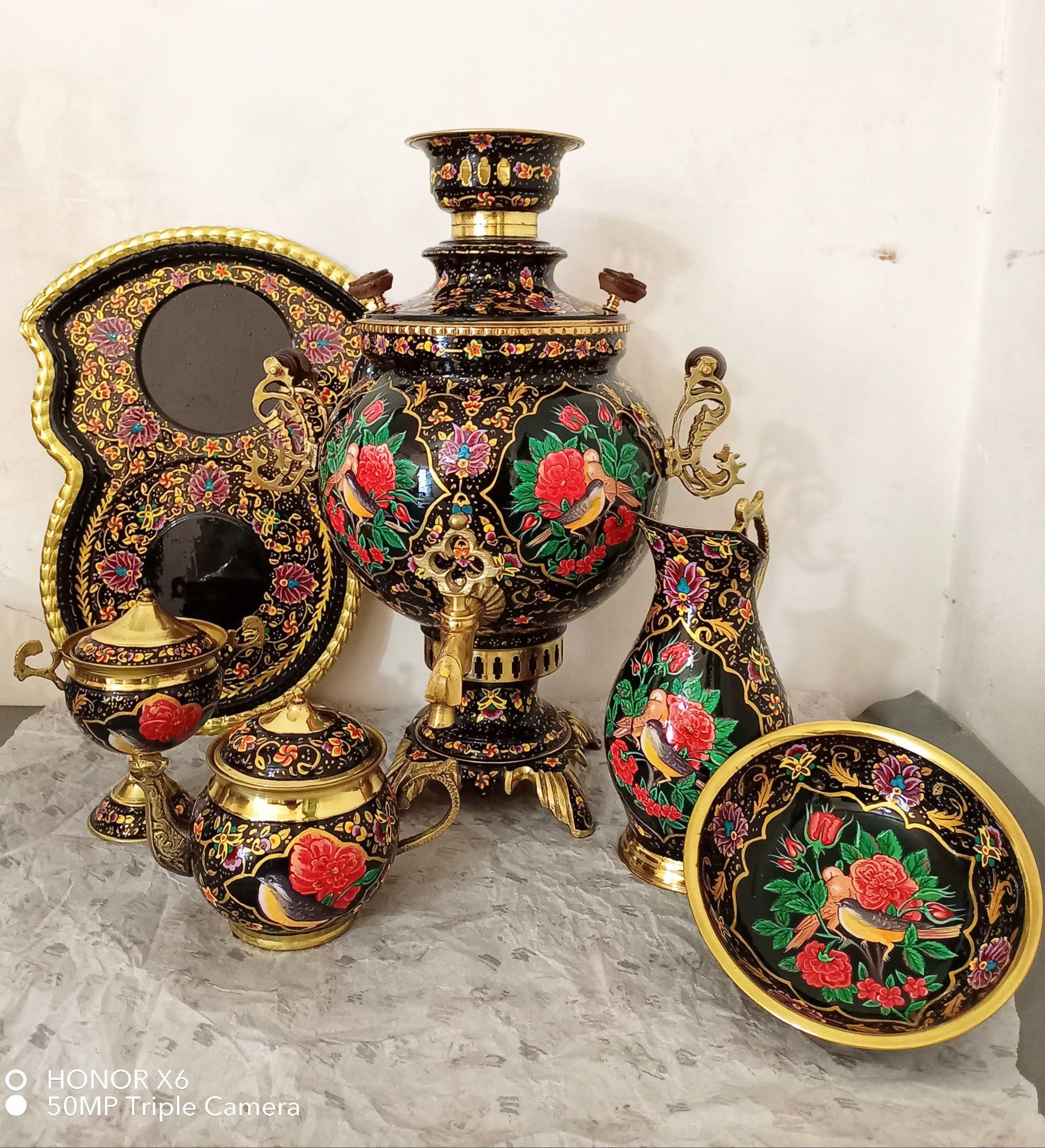 ست سماور ذغالی 6 لیتری میناکاری بینظیر طرح عباسی پرکار