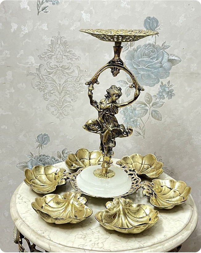 اردو خوری و هفت سین برنزی مدل بانو طناب زن با برگ صدفی