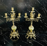 ساعت شمعدان برنز ترکیب با سنگ طبیعی