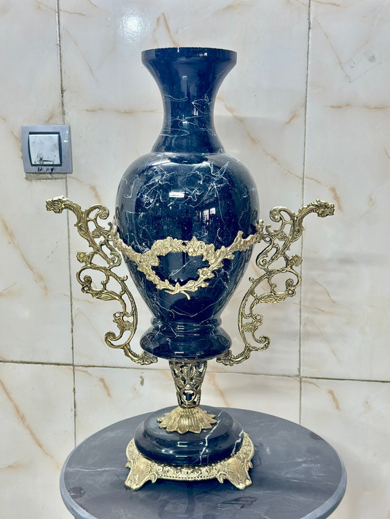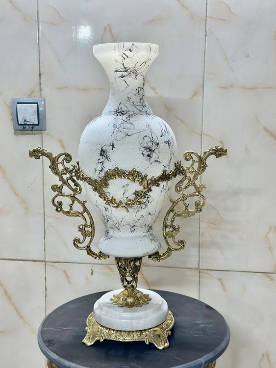 گلدان بلوری - دسته ها برنزی - پایه سنگی