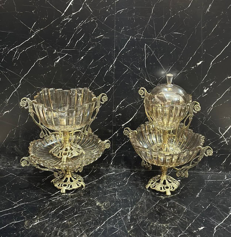 ست پذیرایی 4 تکه بلور و برنز مدل برلین دو دسته رنگ دودی