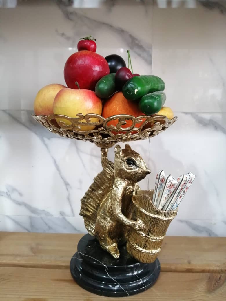 میوه خوری برنز همراه با جا کاردی مدل سنجاب پایه سنگی