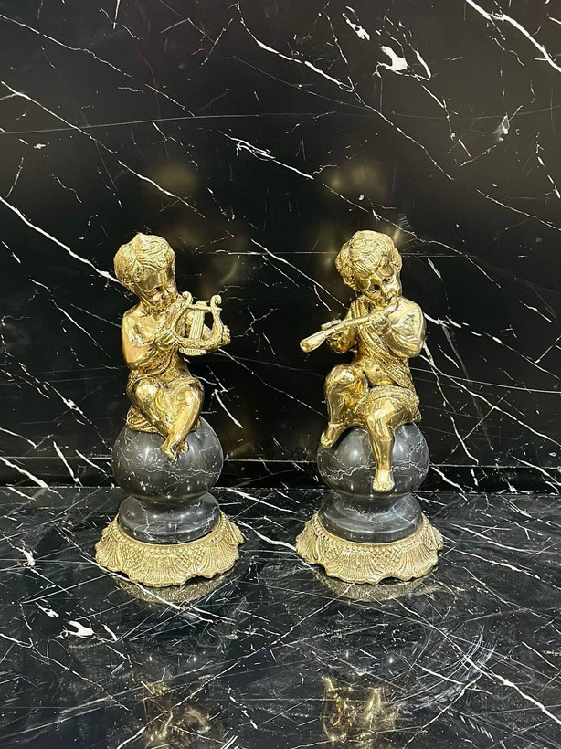 مجسمه برنز پسرک نوازنده جفتی