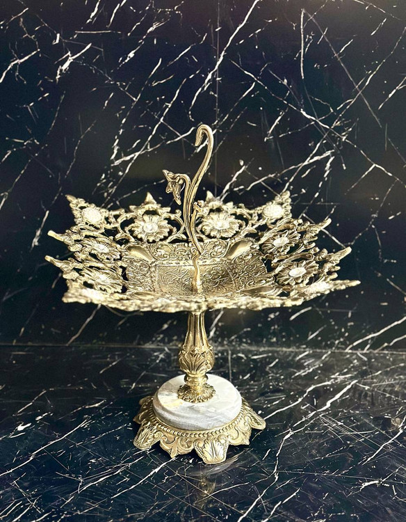ظرف برنز نگین خور مدل مربعی دارای ستون بلند و مناسب و پایه ی سنگی ، دارای دسته برای راحتی و همچنین زیبایی کار *****