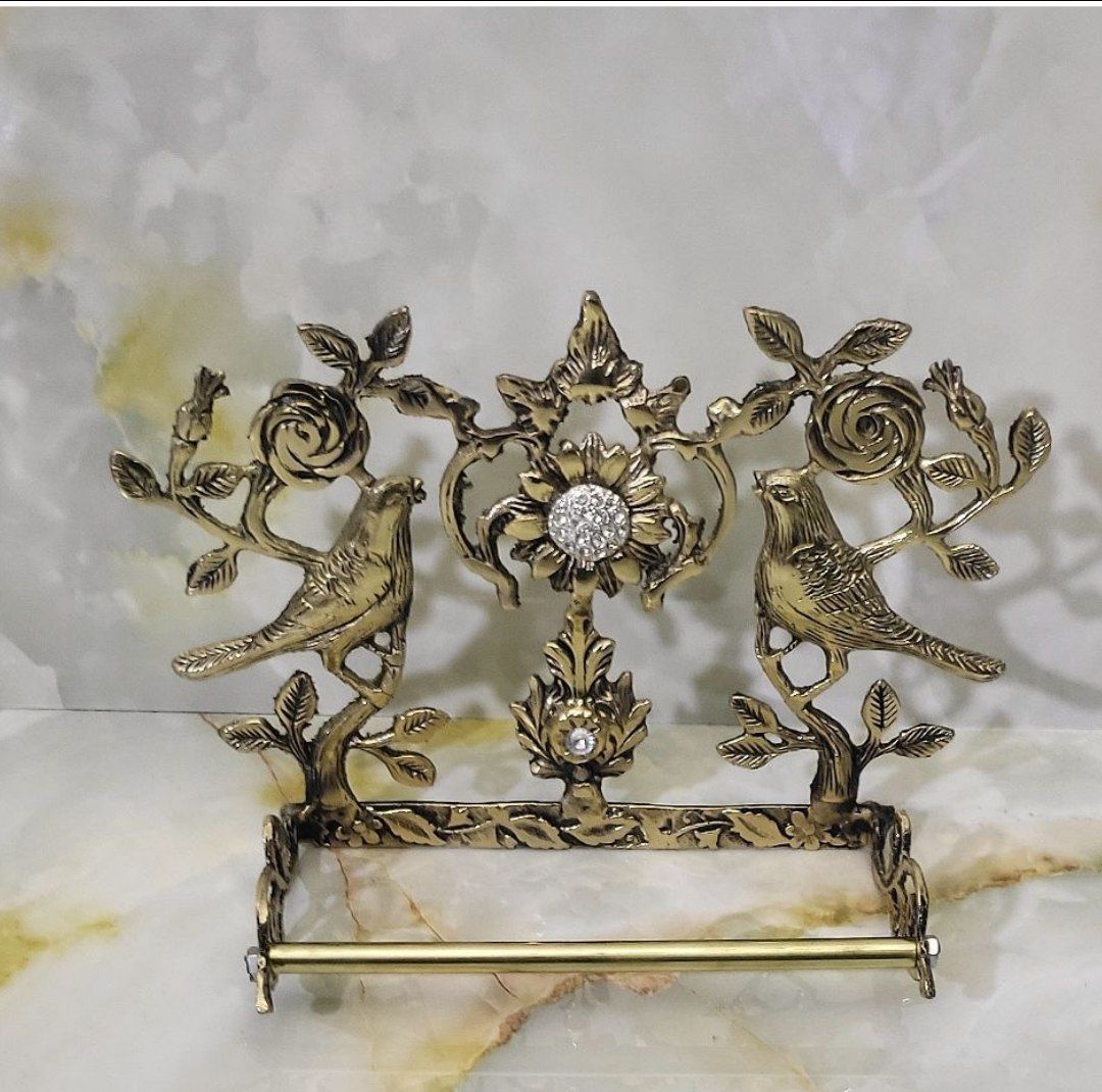 ست جاکلیدی و حوله آویز برنز مدل گل و بلبل
