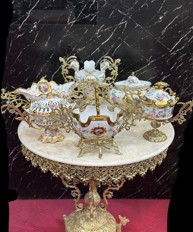 جنس متریال: چینی سفید گل برجسته و برنز اصل