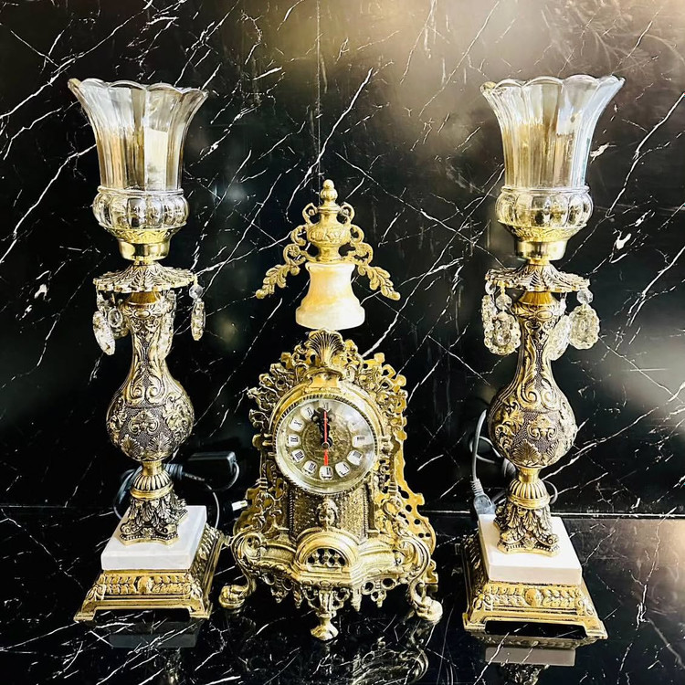 ست شمعدان دایکاست پایه سنگی و ساعت کنت