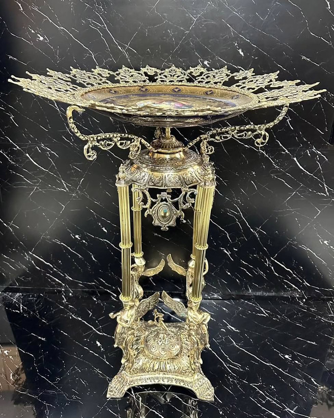 میوه خوری کنار سالنی برنز پرکار و سنگین مدل 4 پایه فرشته رنگ سورمه ای