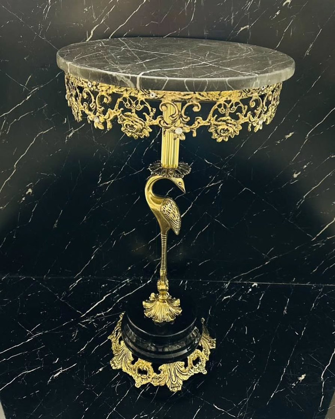 میز تلفن برنزی درنا با گل رز و نقلی