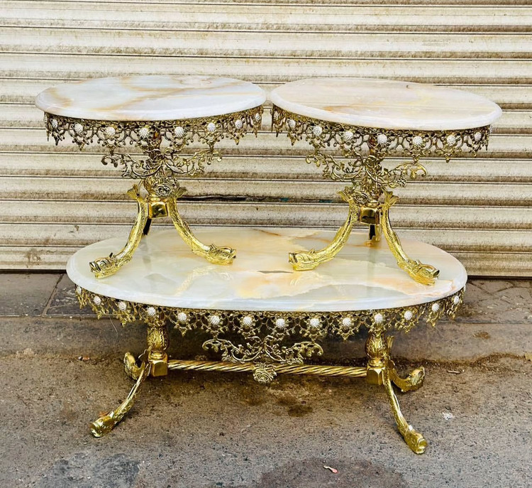 میز عسلی و جلو مبلی تاجدار برنز مدل گل آفتابگردان پایه ماهی