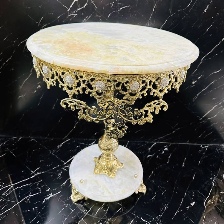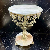 میز تلفن برنز آفتابگردان مدل جلو تاج دار با پایه ی سنگی