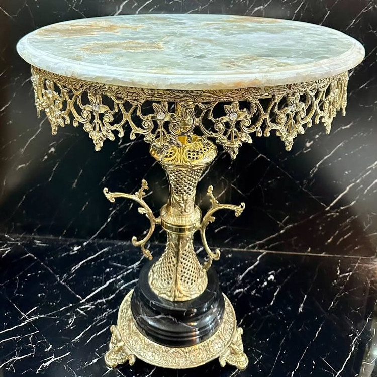 اینم یه میز تسمه اسلیمی با ستون زنبوری و پایه ی سنگی گرد برای دوستانی که میز بزرگ میخواستند ؛ با قطر سنگ 60 و 50 امکان پذیر هست و رنگ سنگ پایه و سنگ روی میز ، به انتخاب شما سفید یا مشکی تقدیمتون میشه، رنگ انتخابی را در زمان سفارش حتما در قسمت توضیحات ذکر کنید.