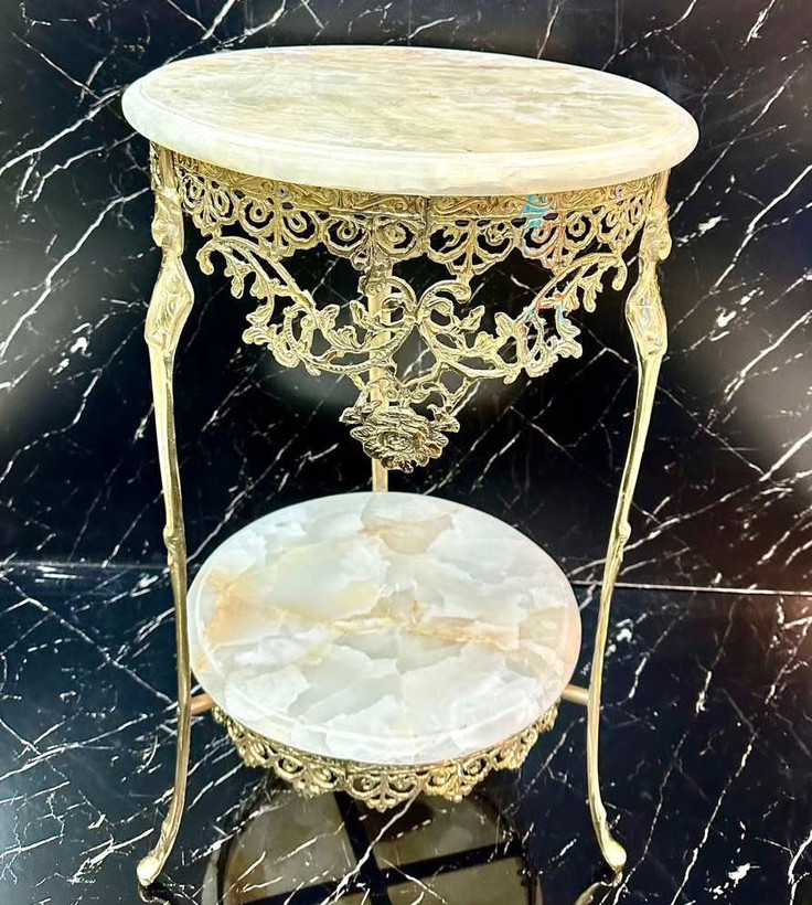 میز تلفن دوطبقه برنزی مدل تاج قمی