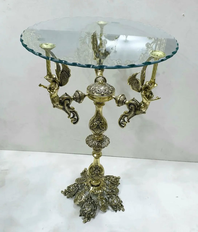 میز خاطره 3 فرشته برنزی مدل پایه برگی ارتفاع 82 سانتی متر